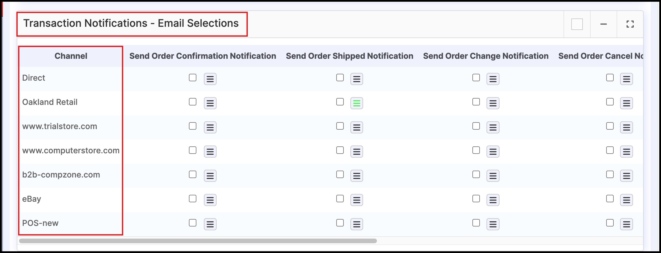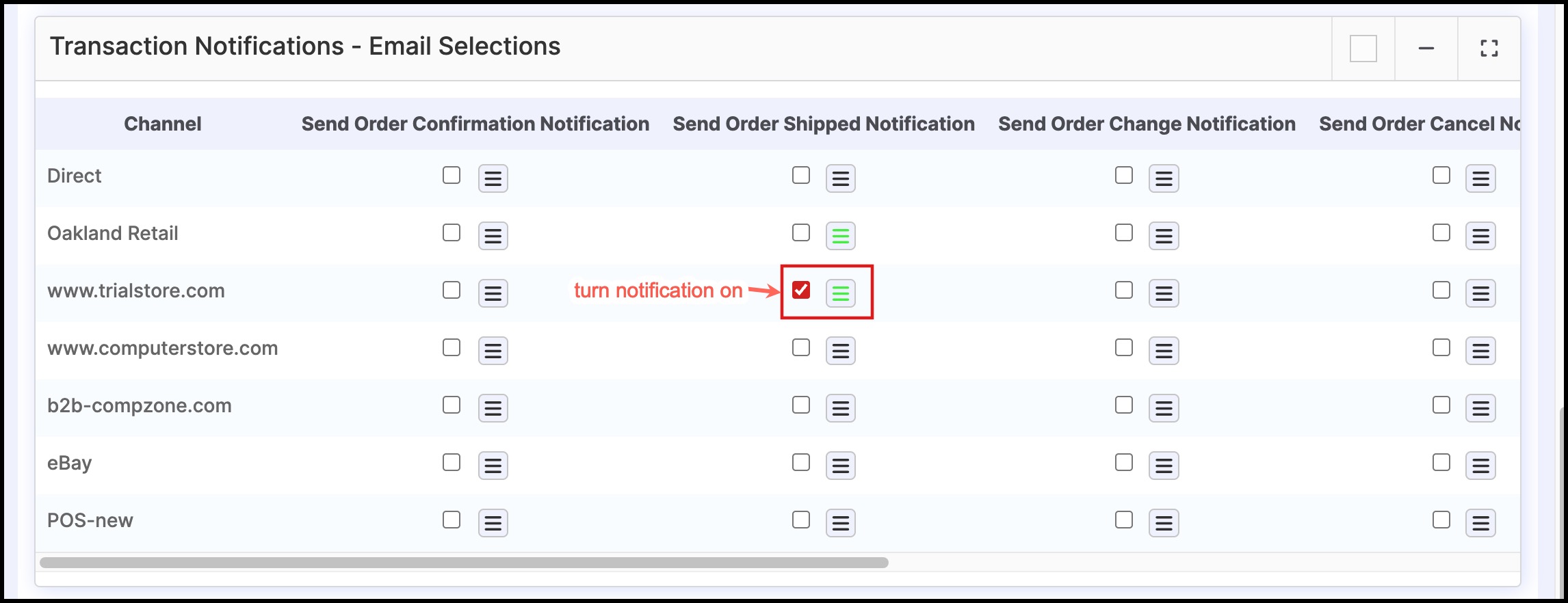 Let's consider the POS OAK sales channel and Sales Order Shipped Notification. To send order shipped notifications to any particular person: