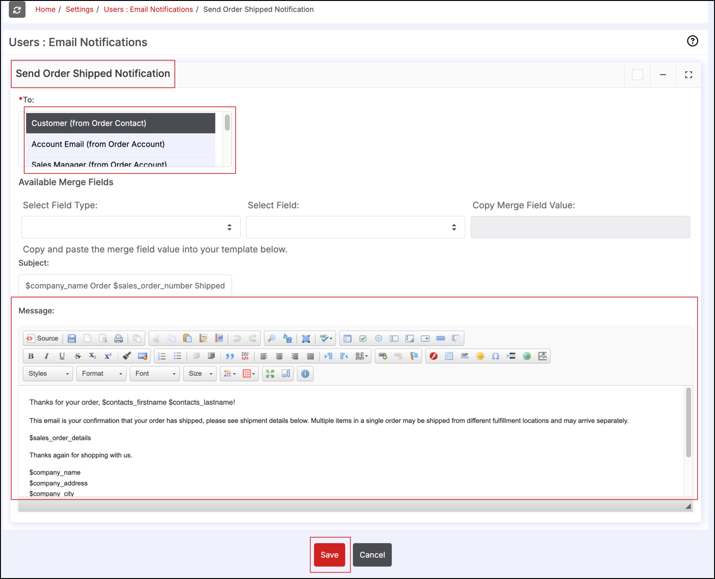 Transaction Notifications - Email Selection - Sales Orders