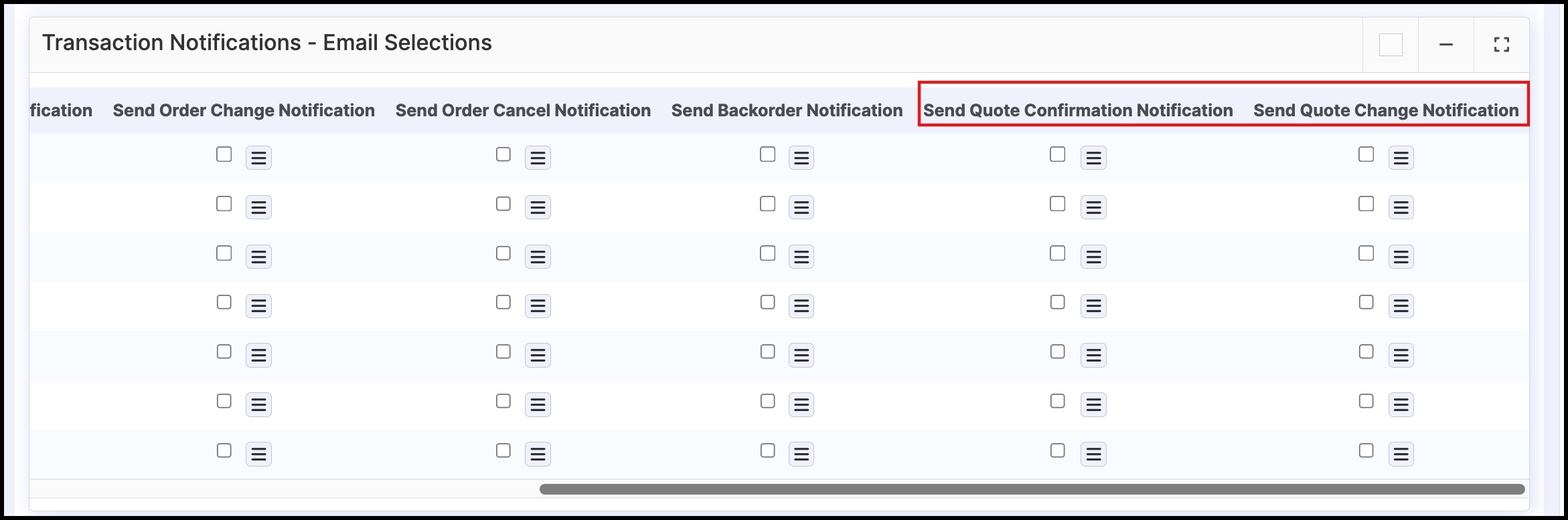 Transaction Notifications - Email Selection - Quotes