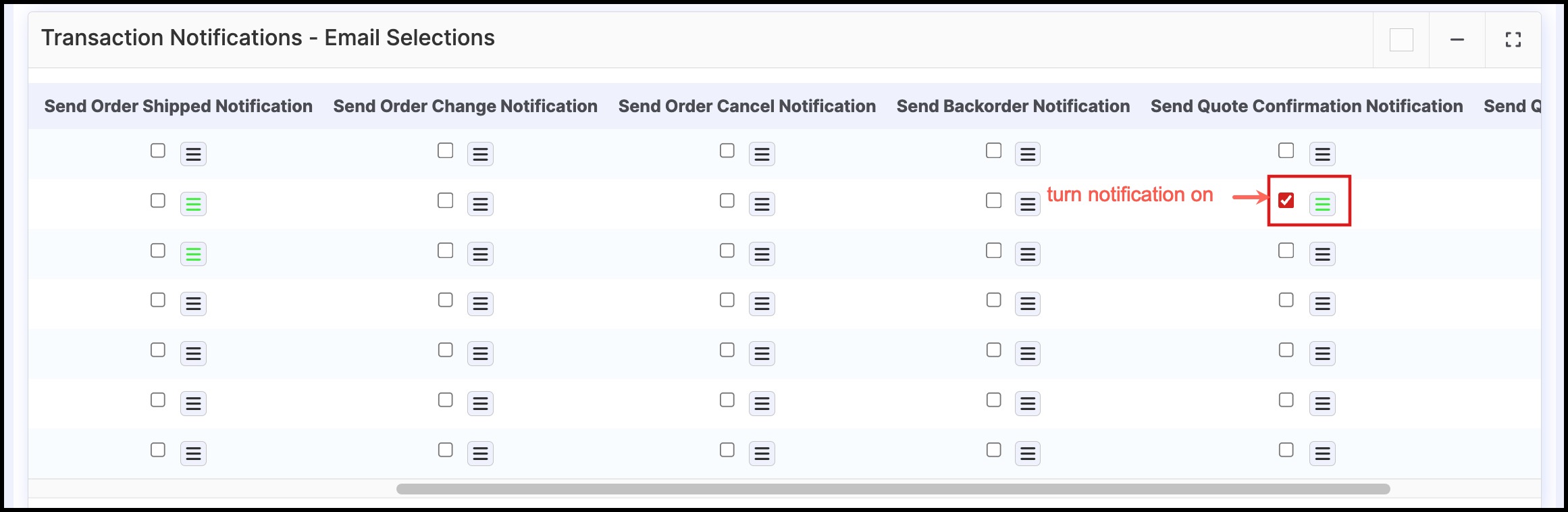 - Click on the checkbox to turn the notification on.