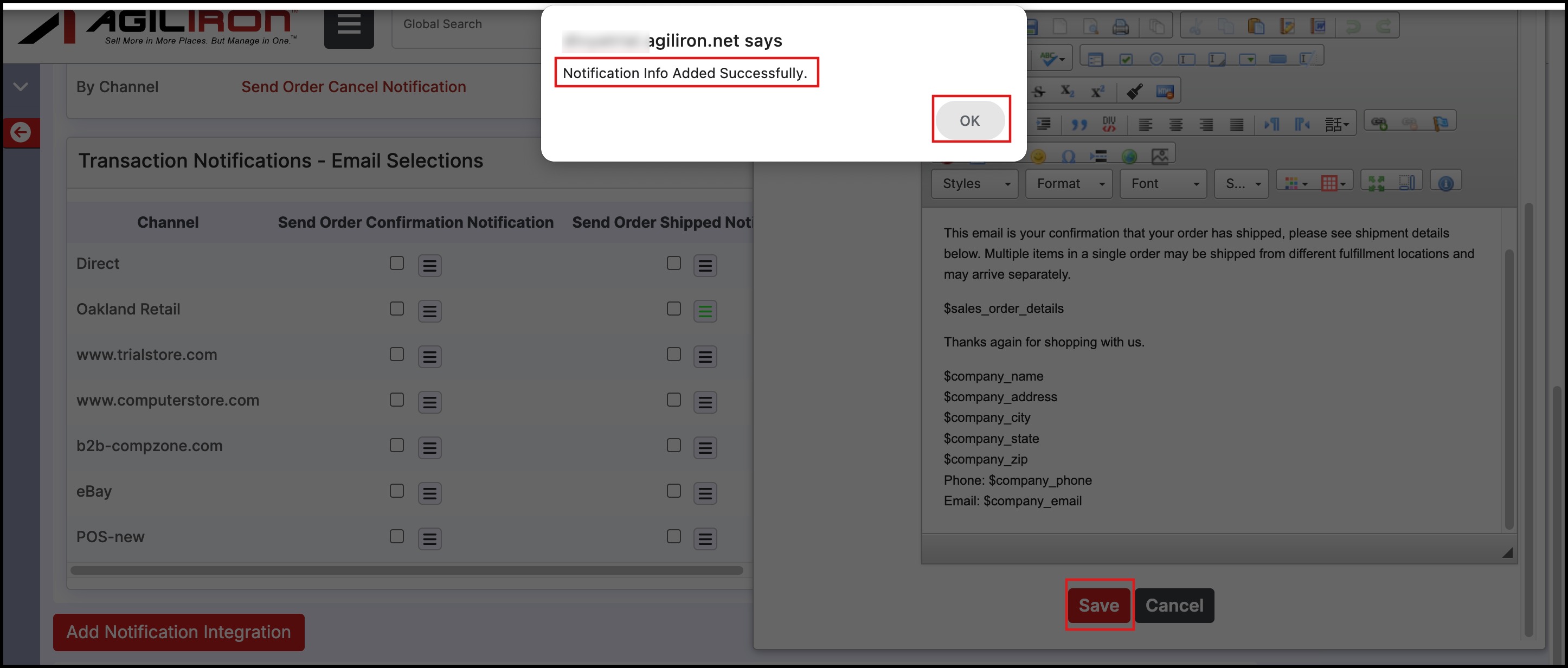 Whereas Agiliron Solution Suite, allows a business to add and configure multiple sales channels. Any sales channel (except POS channels) added to the Agiliron system will be automatically displayed in this notification panel and will be available for customization.