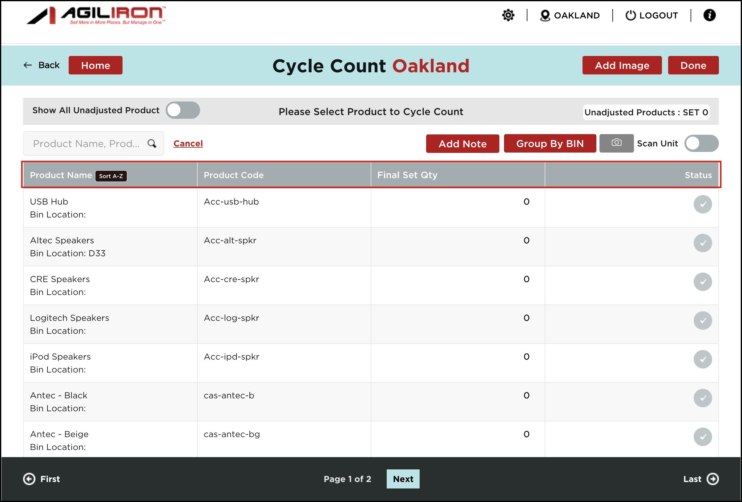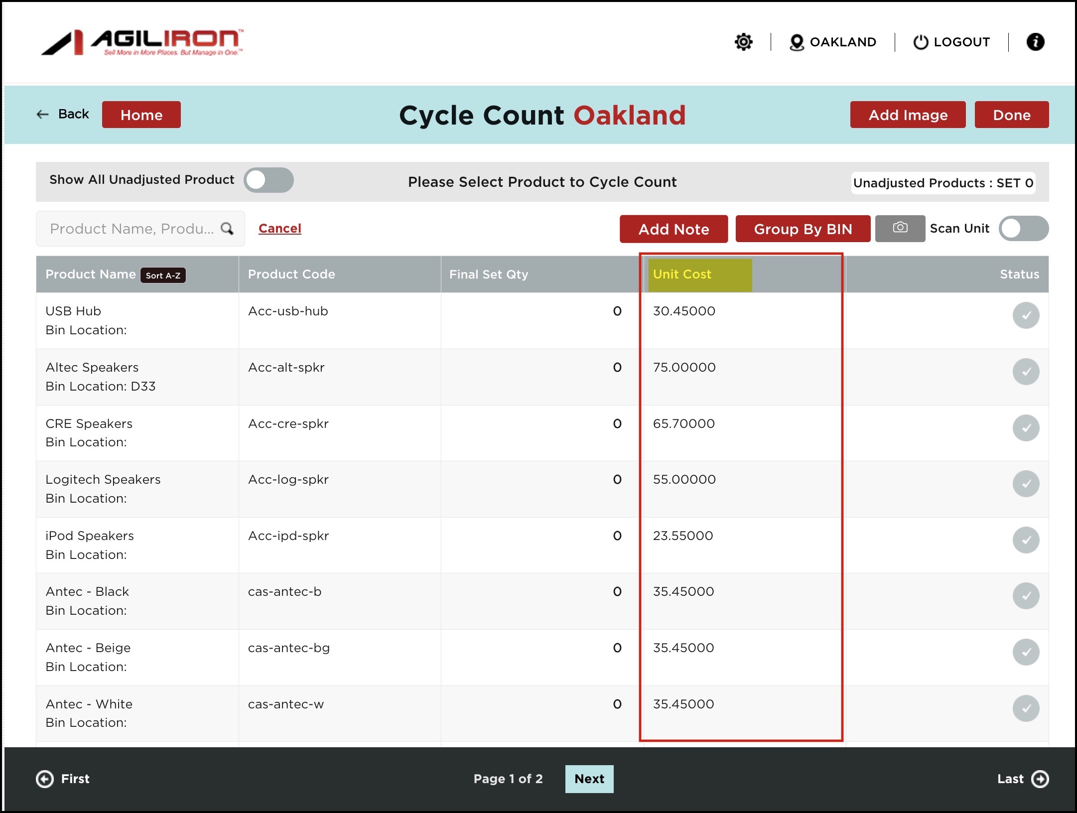 - After logging in to the warehouse management app, when you go to Cycle Count Workflow, you will see the Unit Cost column is removed from the table.
