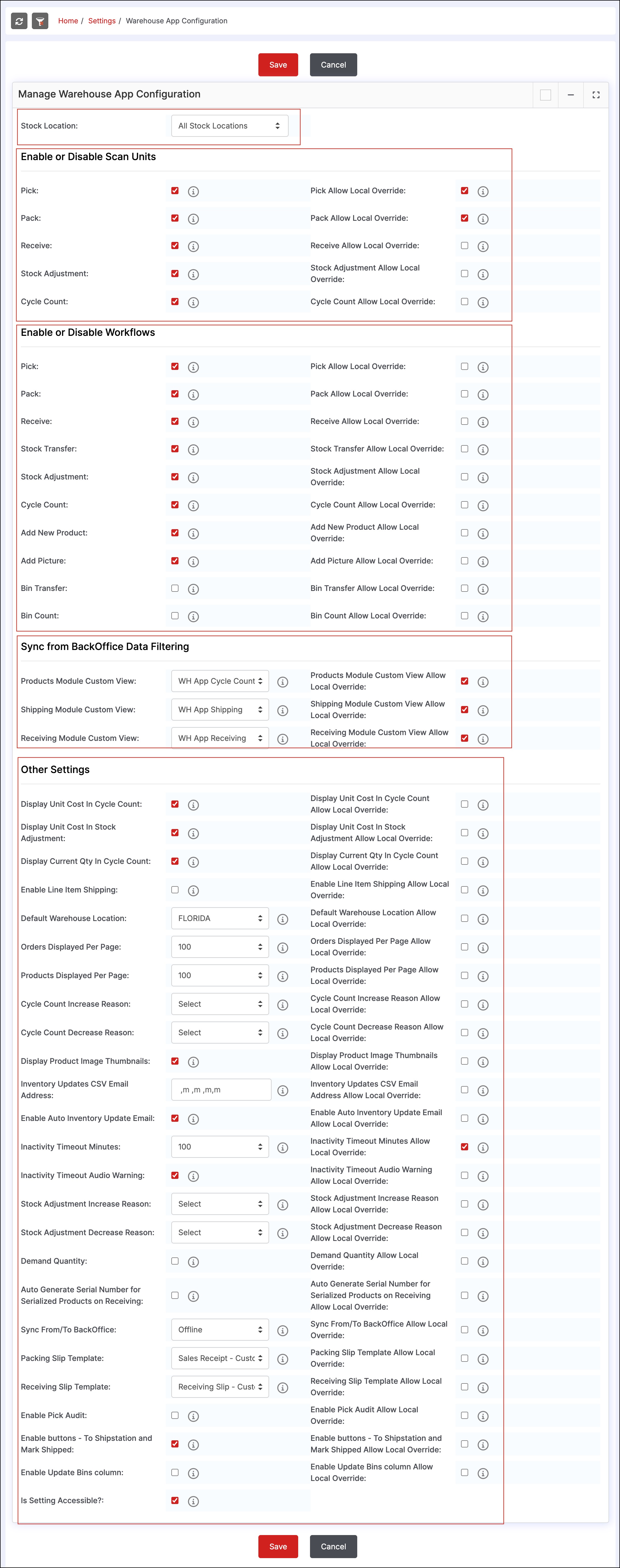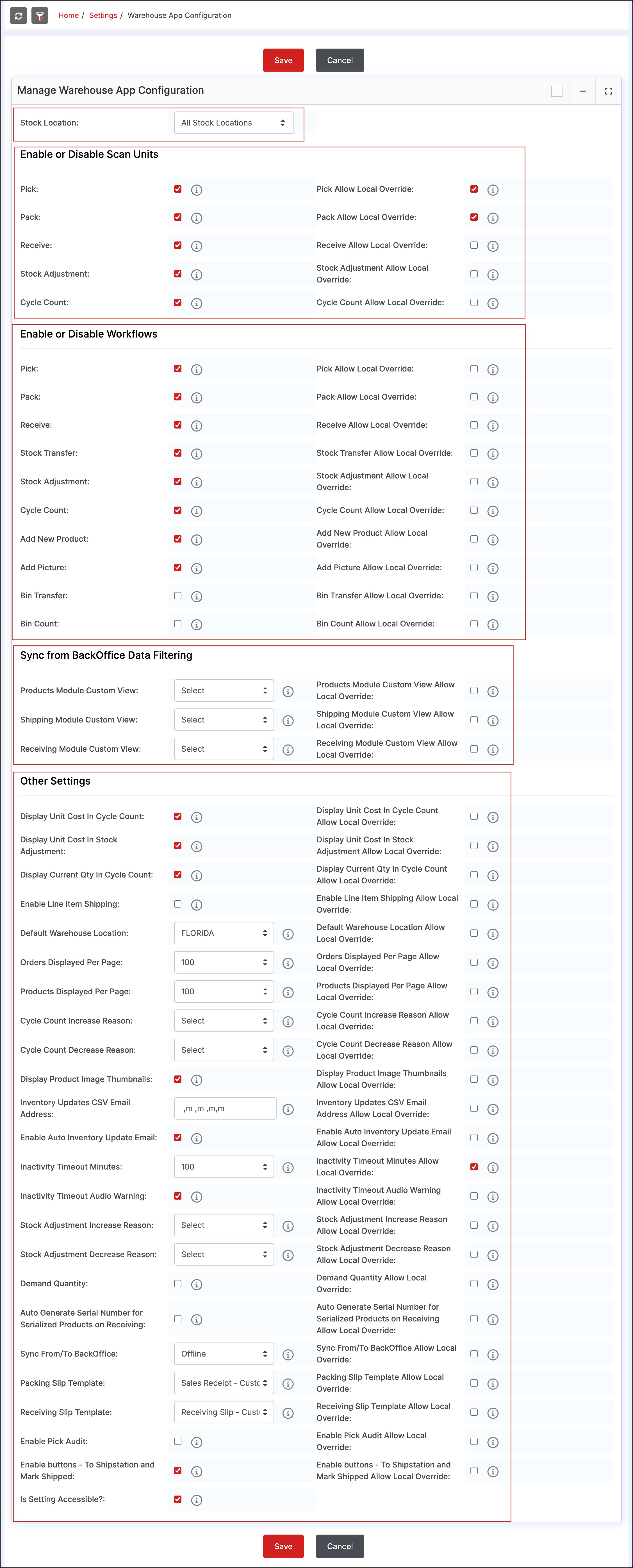 - For Cycle Count, we've allowed local override
