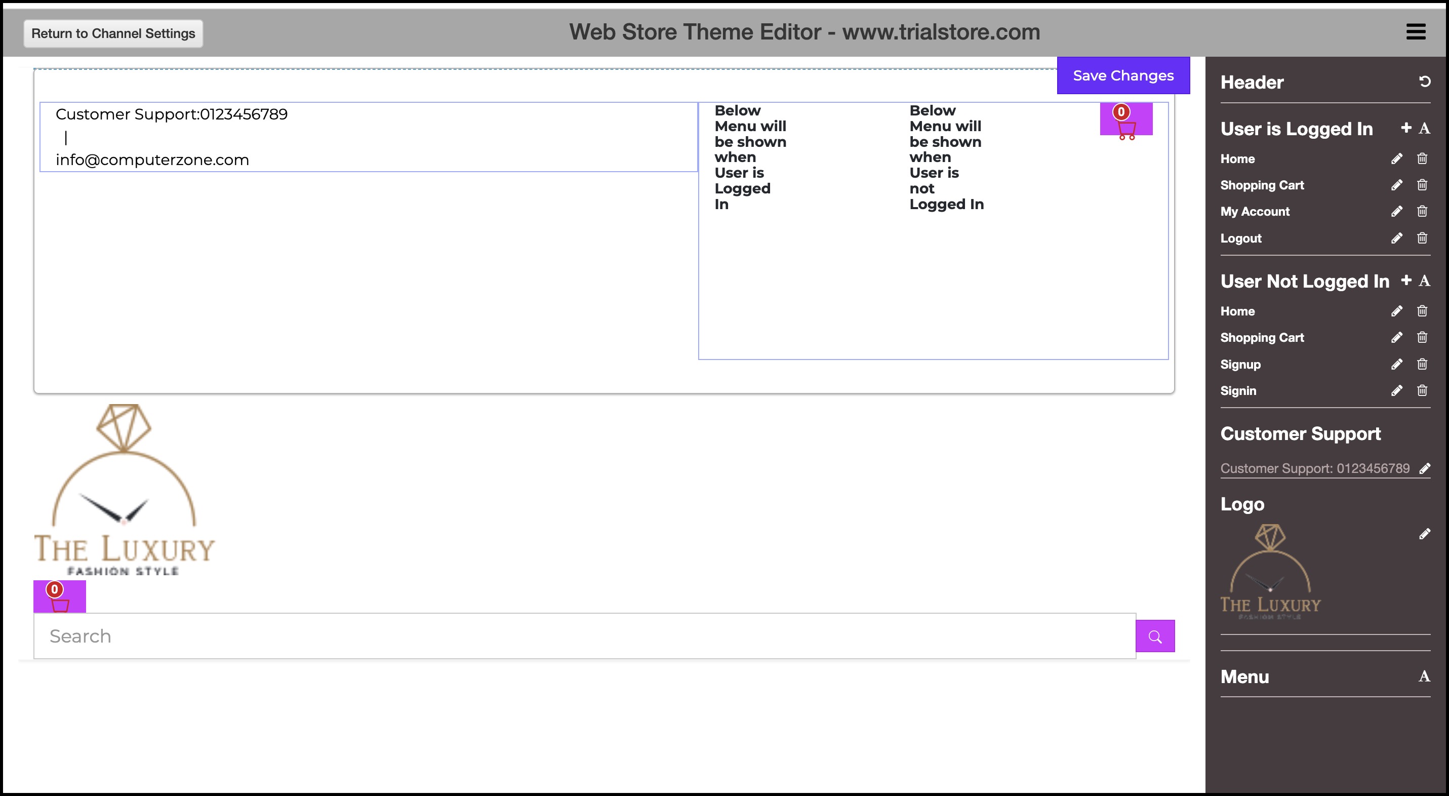 The Webstore Design Theme Editor in the backoffice allows user for greater customization of website. This is available for both B2B and B2C webstore themes. At this time, it is available for all themes supported in the Webstore starting with the number 5.