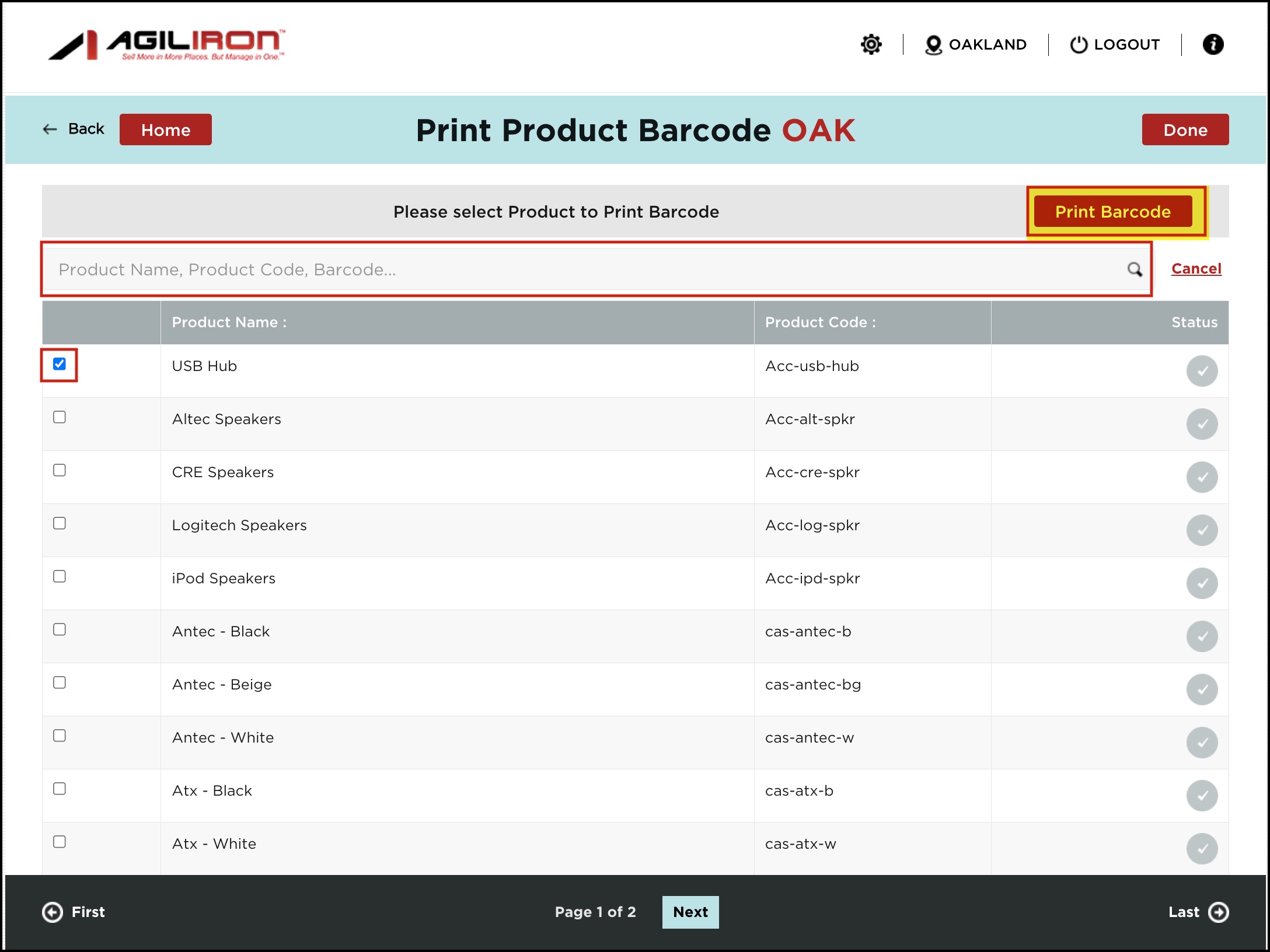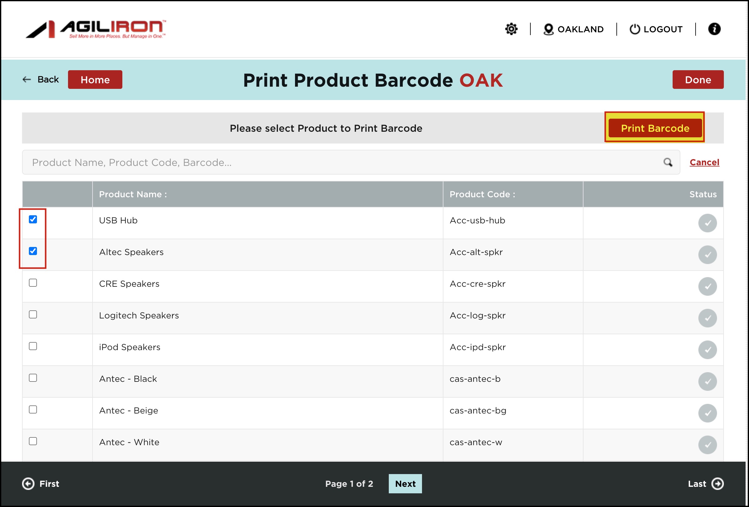 - You can even print a barcode for multiple products by clicking on the checkbox beside the products you want.