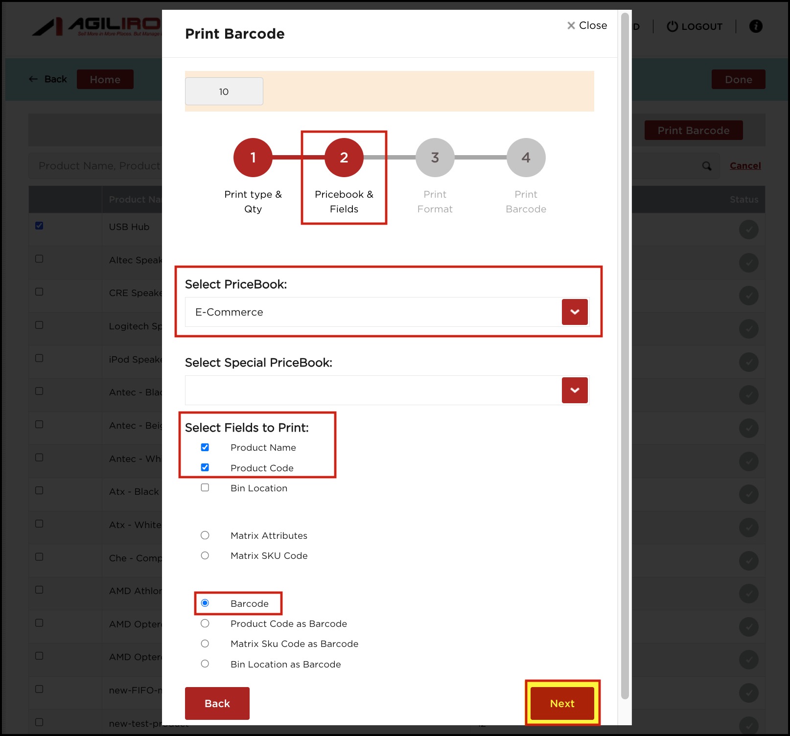 - In the next step, select the PriceBook and Special PriceBook (if any) for the products to print the selling price on the labels.