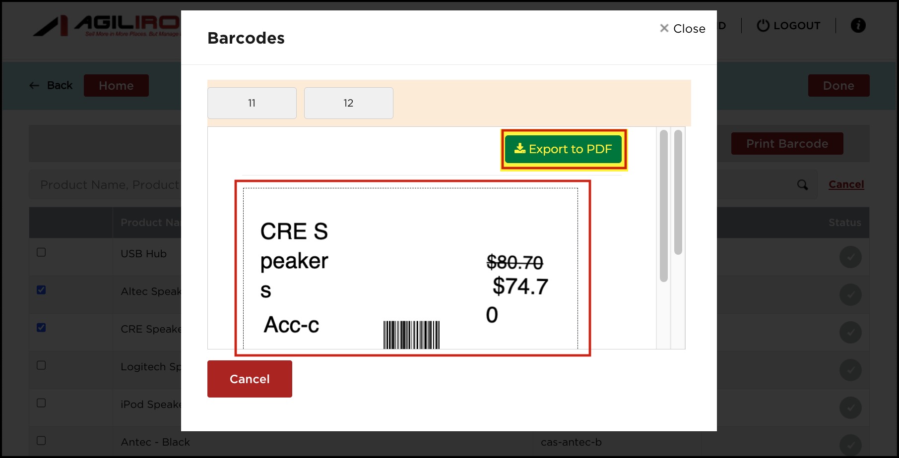 In the next step, you can see all the product barcodes printed (as per the label template you selected), which you can Export to PDF.