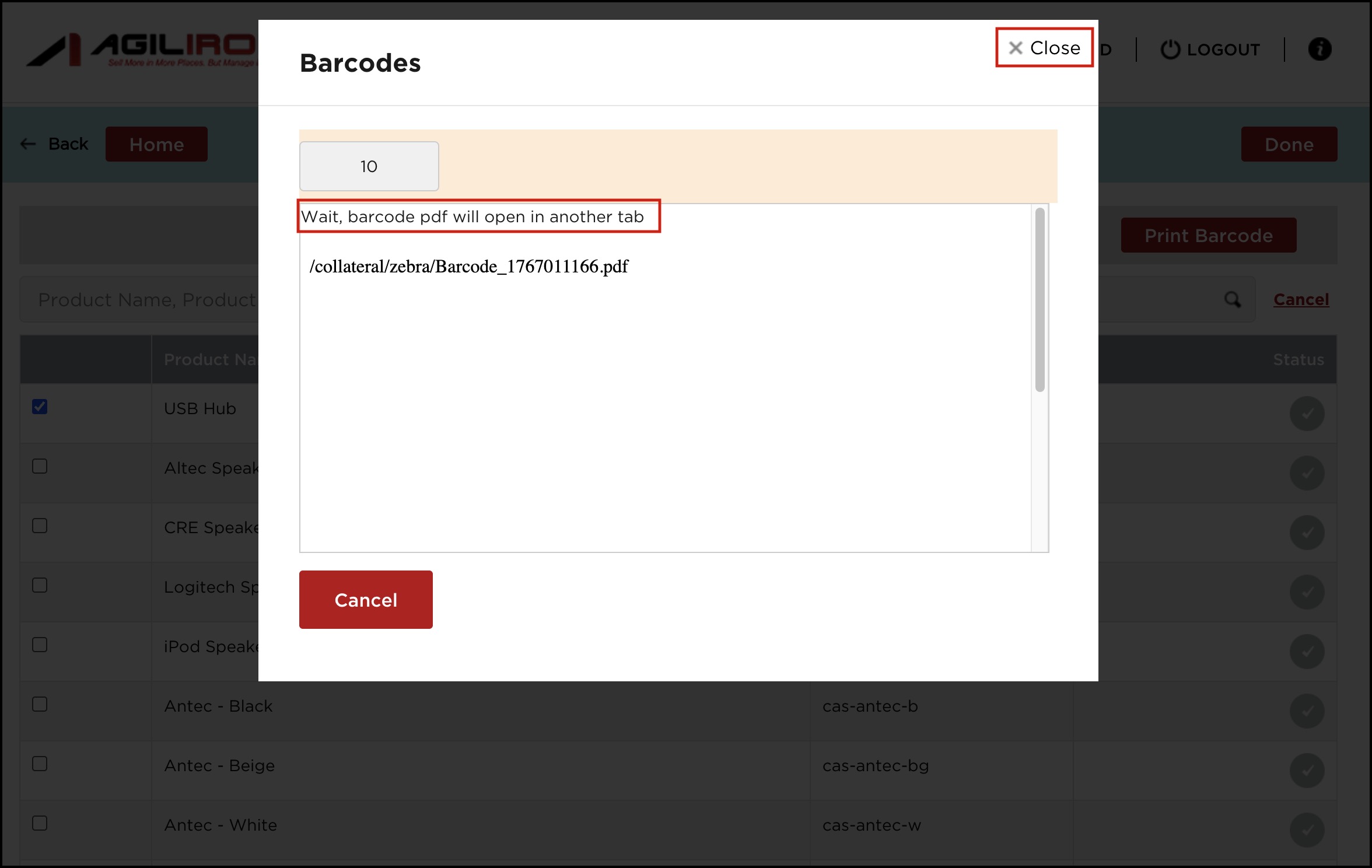 In the next step, the barcodes get printed, and the barcode PDF will open in another tab.